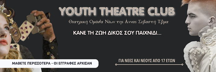Θεατρικό Εργαστήριο Youth Theater Club από την Άννα Σεβαστή Τζίμα για νέους & νέες από 17 ετών, στις Μορφές Έκφρασης