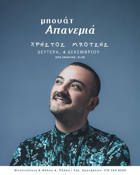 Ο Χρήστος Μπότσης στην μπουάτ Απανεμιά, την Δευτέρα 4 Δεκεμβρίου, τραγουδά την «Ασπιρίνη»
