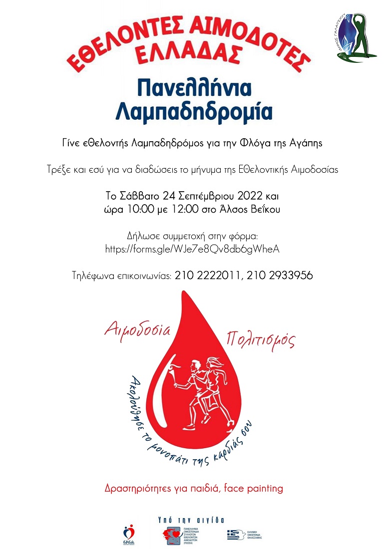 Κάλεσμα συμμετοχής για την Πανελλήνια Λαμπαδηδρομία Εθελοντών Αιμοδοτών