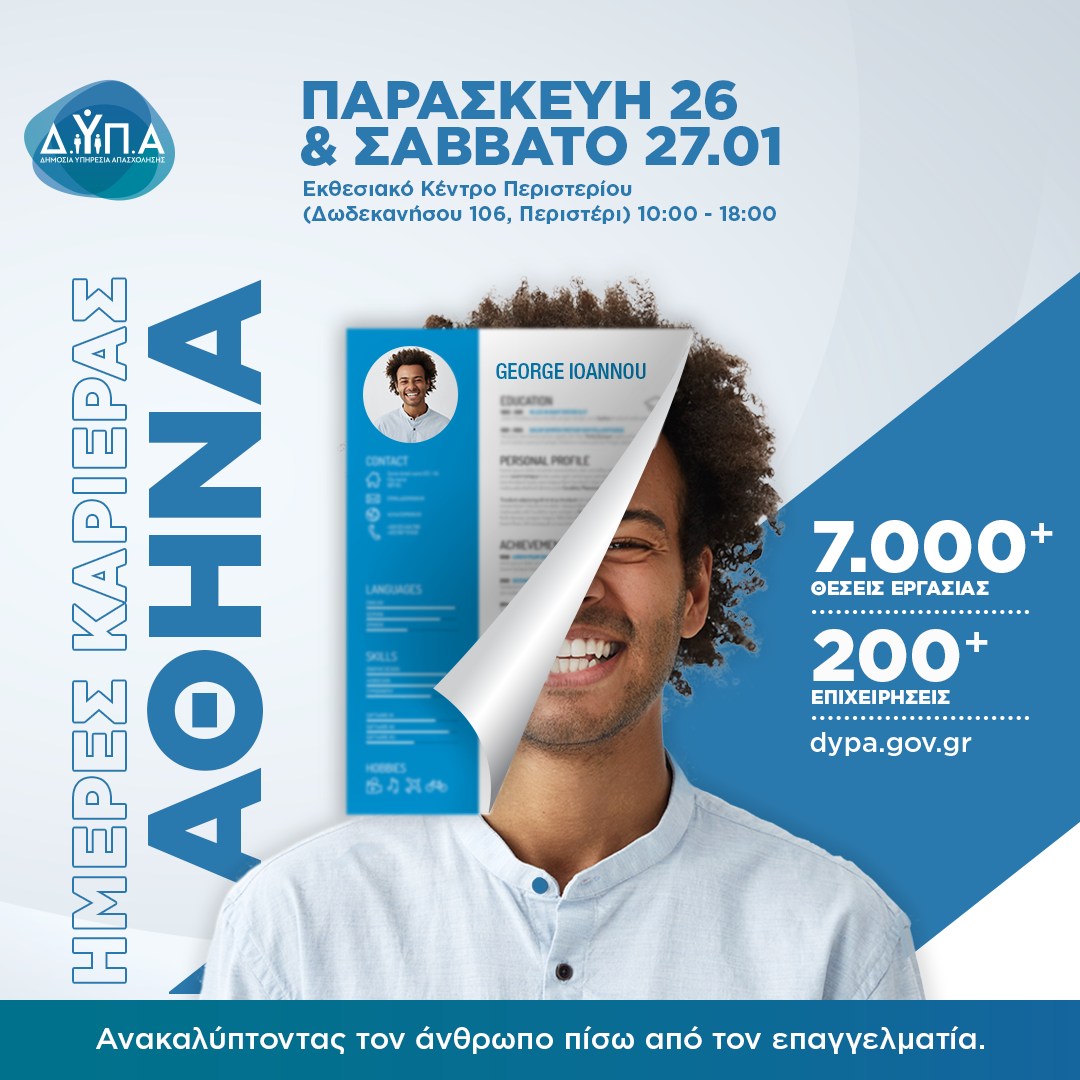«Ημέρες Καριέρας» της ΔΥΠΑ στις 26-27 Ιανουαρίου στην Αθήνα