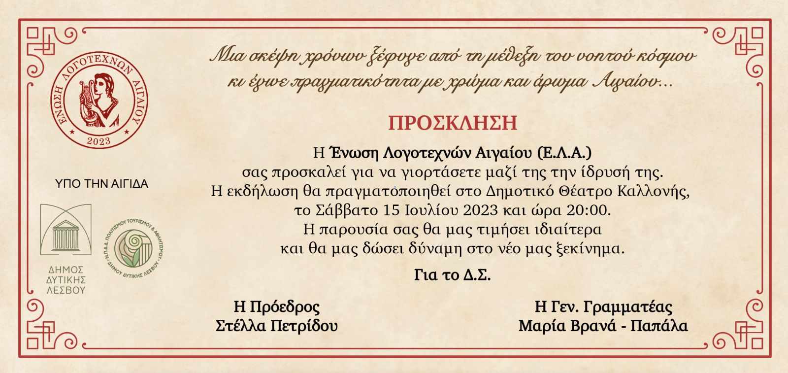 Εκδήλωση για την ίδρυση της Ένωσης Λογοτεχνών Αιγαίου