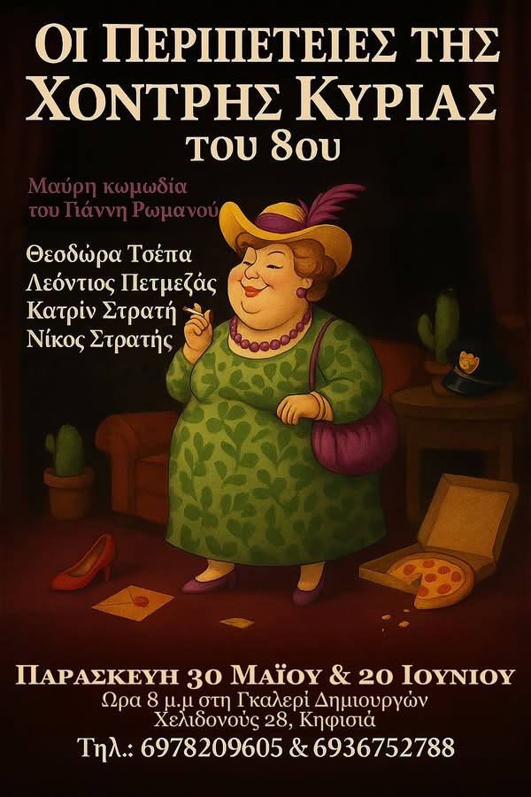Η μαύρη κωμωδία «Oι περιπέτειες της χονδρής κυρίας του 8ου» του Γιάννη Ρωμανού, στην Γκαλερί Δημιουργών