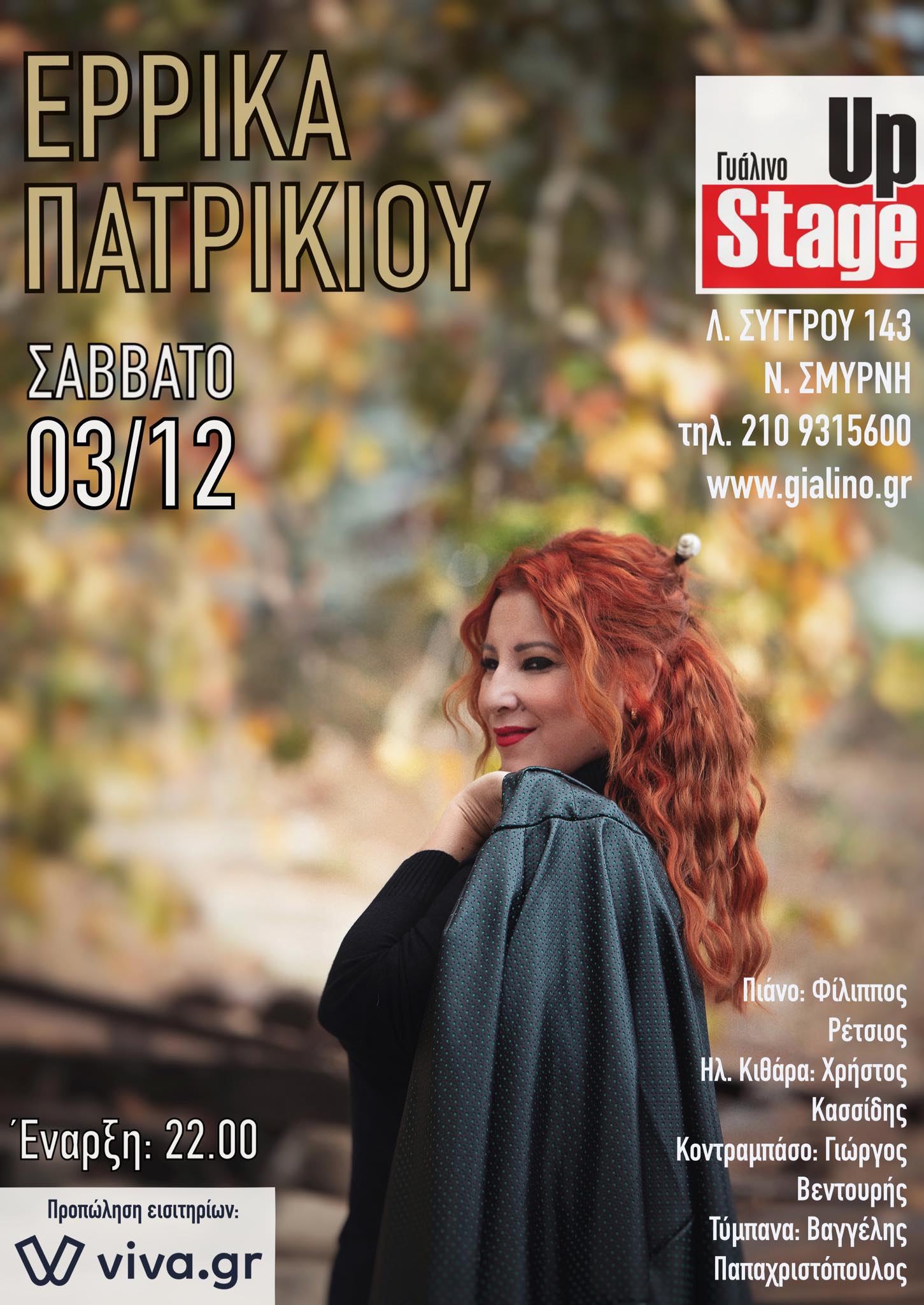 Η Έρρικα Πατρικίου live στο Γυάλινο Up Stage - Σάββατο 3 Δεκεμβρίου