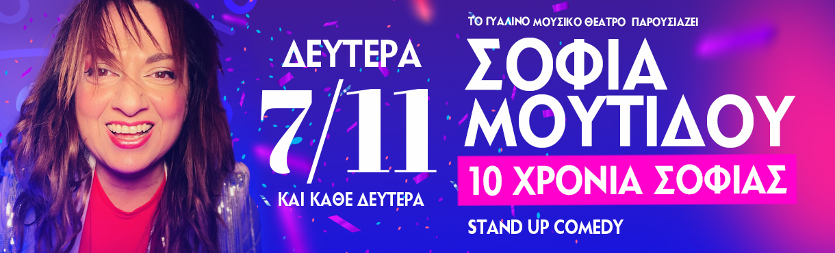 Σοφία Μουτίδου: «10 χρόνια Σοφίας». Από Δευτέρα 7 Νοεμβρίου & κάθε Δευτέρα στο Γυάλινο Μουσικό Θέατρο