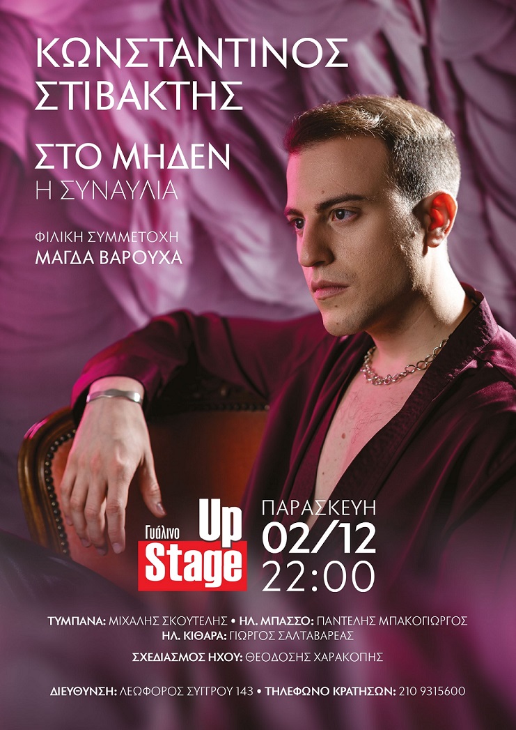 Παρασκευή 2 Δεκεμβρίου: Ο Κωνσταντίνος Στιβακτής στο Γυάλινο Up Stage - Guest: Μάγδα Βαρούχα