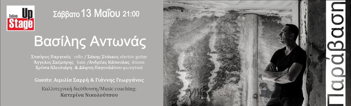 Ο Βασίλης Αντωνάς στο Γυάλινο Up Stage. Guests: Αιμιλία Σαρρή, Γιάννης Γεωργάνος, το Σάββατο 13 Μαΐου
