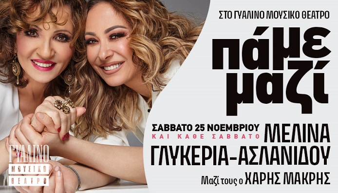 Γλυκερία – Μελίνα Ασλανίδου «Πάμε μαζί» - Μαζί τους ο Χάρης Μακρής, το Σάββατο 25 Νοεμβρίου και κάθε Σάββατο στο Γυάλινο Μουσικό Θέατρο