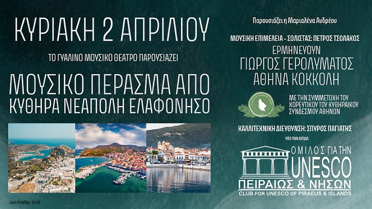 Μουσικό πέρασμα από Κύθηρα, Νεάπολη, Ελαφόνησο στο Γυάλινο Μουσικό Θέατρο, την Κυριακή 2 Απριλίου