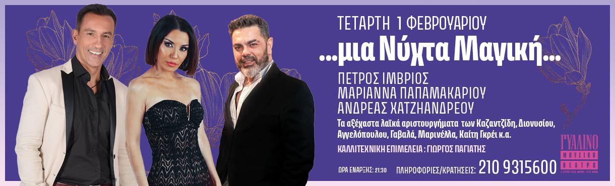 Πέτρος Ίμβριος, Μαριάννα Παπαμακαρίου & Ανδρέας Χατζηανδρέου "Μια νύχτα μαγική”, Τετάρτη 1 Φεβρουαρίου στο Γυάλινο Μουσικό Θέατρο