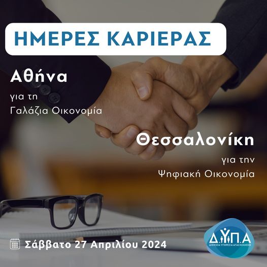 Στις 27 Απριλίου «Ημέρες Καριέρας» στην Αθήνα για τη Γαλάζια Οικονομία και στη Θεσσαλονίκη για την Ψηφιακή Οικονομία