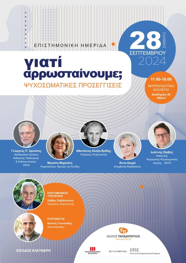 Ημερίδα: «ΓΙΑΤΙ ΑΡΡΩΣΤΑΙΝΟΥΜΕ; ΨΥΧΟΣΩΜΑΤΙΚΕΣ ΠΡΟΣΕΓΓΙΣΕΙΣ» στο Μητροπολιτικό Κολλέγιο Αθήνας