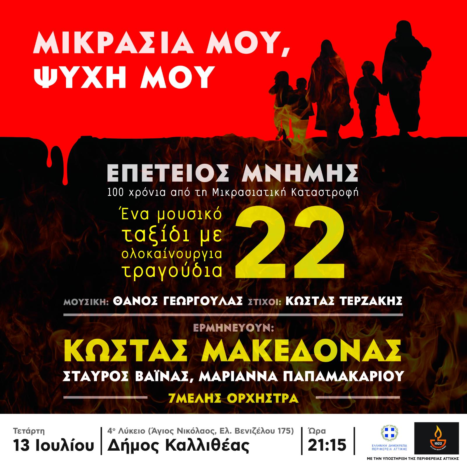 «ΜΙΚΡΑΣΙΑ ΜΟΥ, ΨΥΧΗ ΜΟΥ»: Ένα αφιέρωμα με τον Κώστα Μακεδόνα στην επέτειο μνήμης των 100 χρόνων από την Μικρασιατική καταστροφή