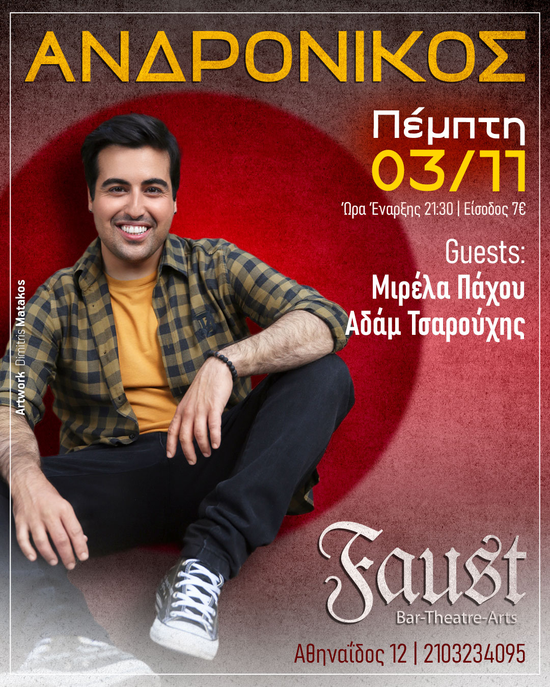 O Aνδρόνικος live στο Faust - Πέμπτη 3 Νοεμβρίου στις 21:30 Guests: Μιρέλα Πάχου - Αδάμ Τσαρούχης
