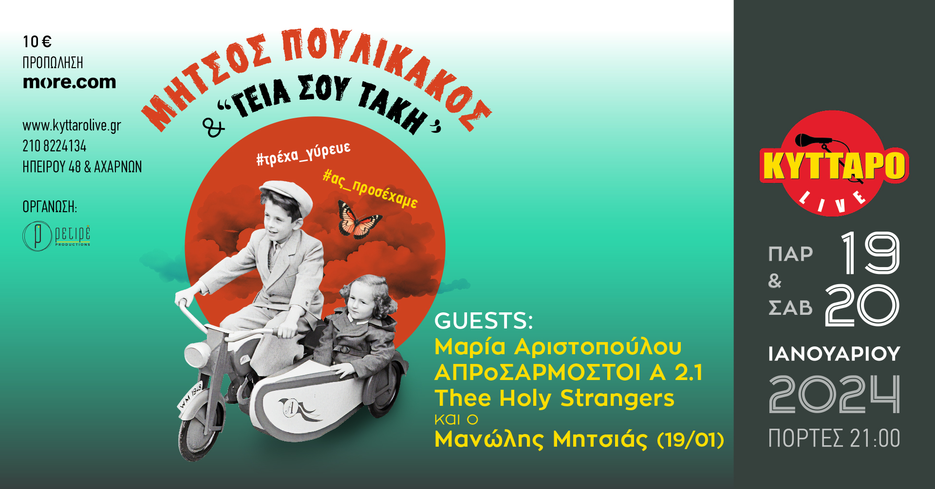 Μήτσος Πουλικάκος και οι «Γεια σου Τάκη» & SPECIAL GUESTS Μαρία Αριστοπούλου, ΑΠΡοΣΑΡΜΟΣΤΟΙ Α 2.1, The Holy Strangers, και ο Μανώλης Μητσιάς (19/1)