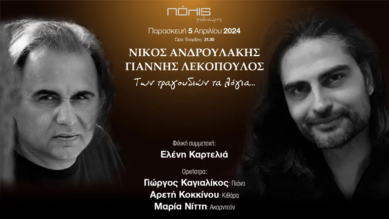 Μουσική Παράσταση «Των Τραγουδιών τα Λόγια…» με τον Νίκο Ανδρουλάκη και τον Γιάννη Λεκόπουλο
