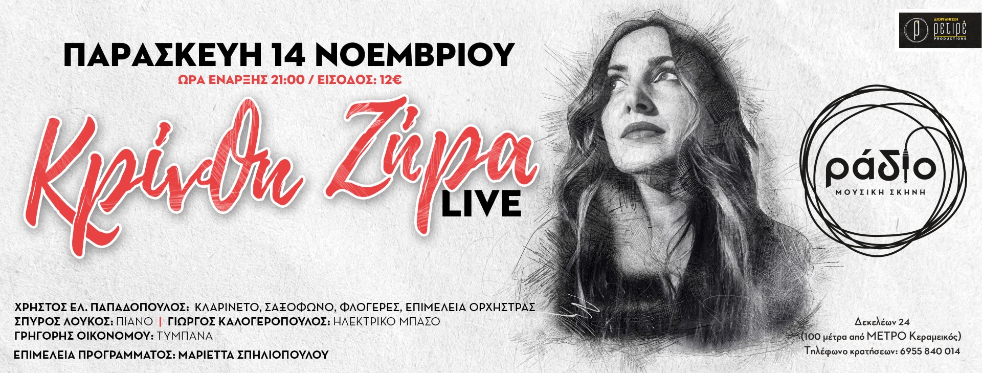 H Κρίνθη Ζήρα στη νέα μουσική σκηνή «Ράδιο», στο Γκάζι