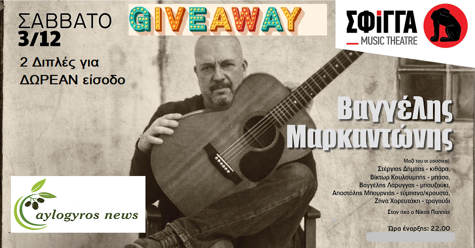 ?? ΔΙΑΓΩΝΙΣΜΟΣ: 2 διπλές προσκλήσεις για ΔΩΡΕΑΝ είσοδο στη μουσική σκηνή Σφίγγα για την μουσική βραδιά με τον Βαγγέλη Μαρκαντώνη