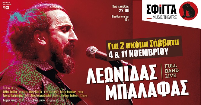 ΛΕΩΝΙΔΑΣ ΜΠΑΛΑΦΑΣ FULL BAND LIVE, για δύο ακόμα Σάββατα στη Σφίγγα: 4 & 11 Νοεμβρίου