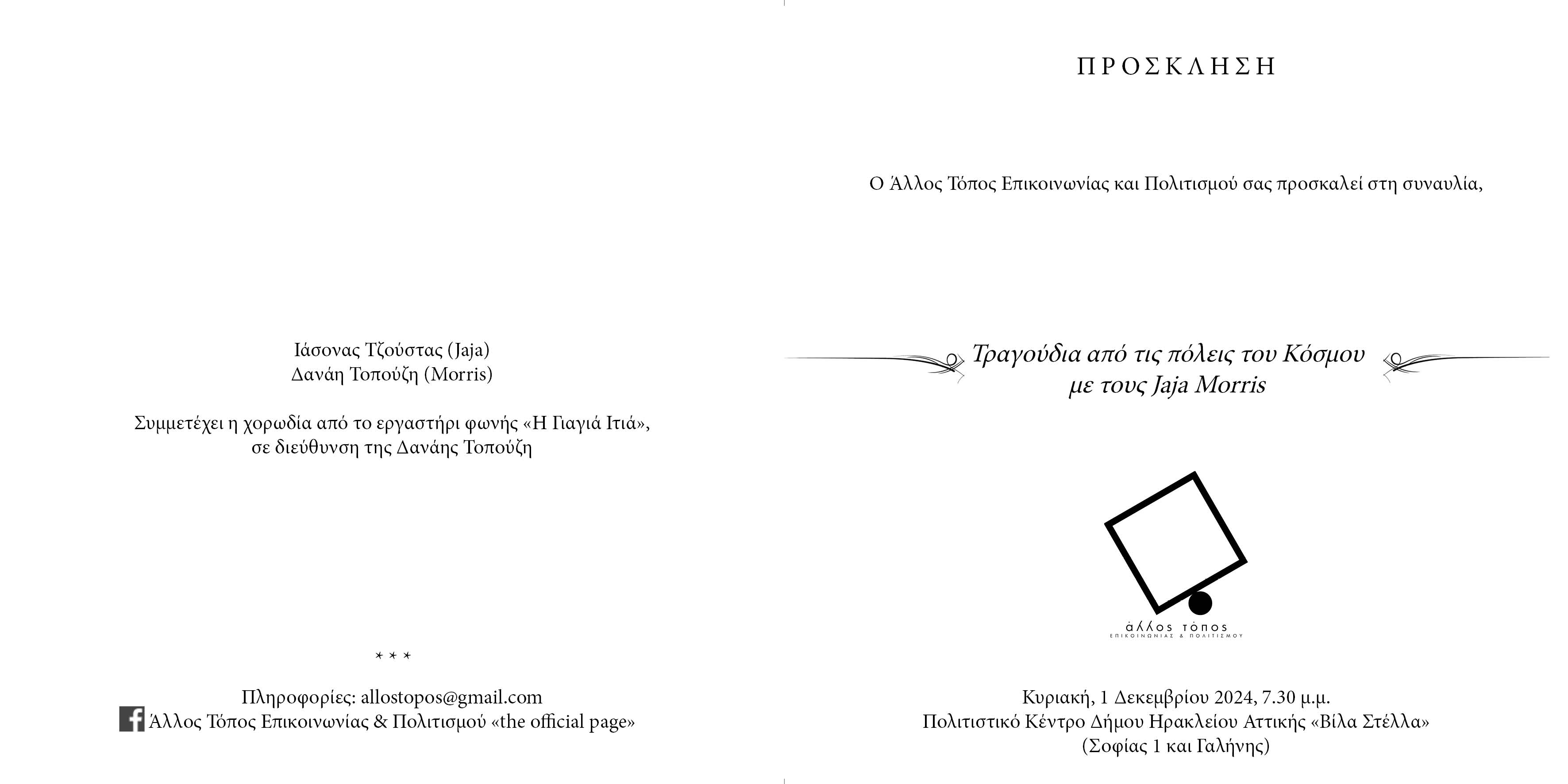 Τραγούδια από πόλεις του κόσμου, με τους Jaja Morris… από τον «Άλλο Τόπο Επικοινωνίας και Πολιτισμού»
