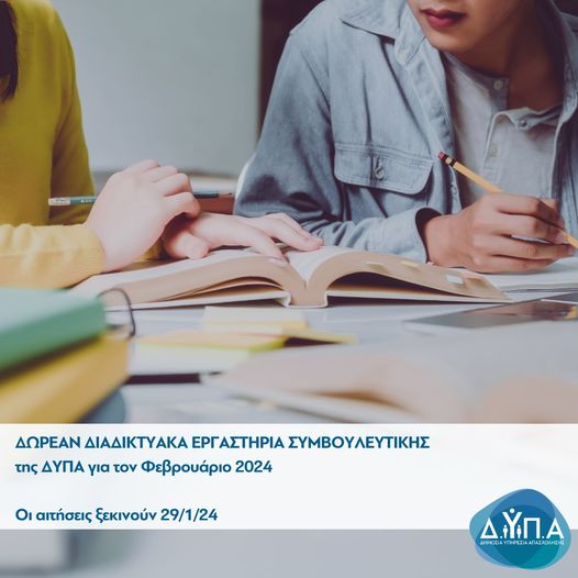 Ξεκινούν οι αιτήσεις για τα δωρεάν διαδικτυακά εργαστήρια συμβουλευτικής της ΔΥΠΑ για τον Φεβρουάριο 2024