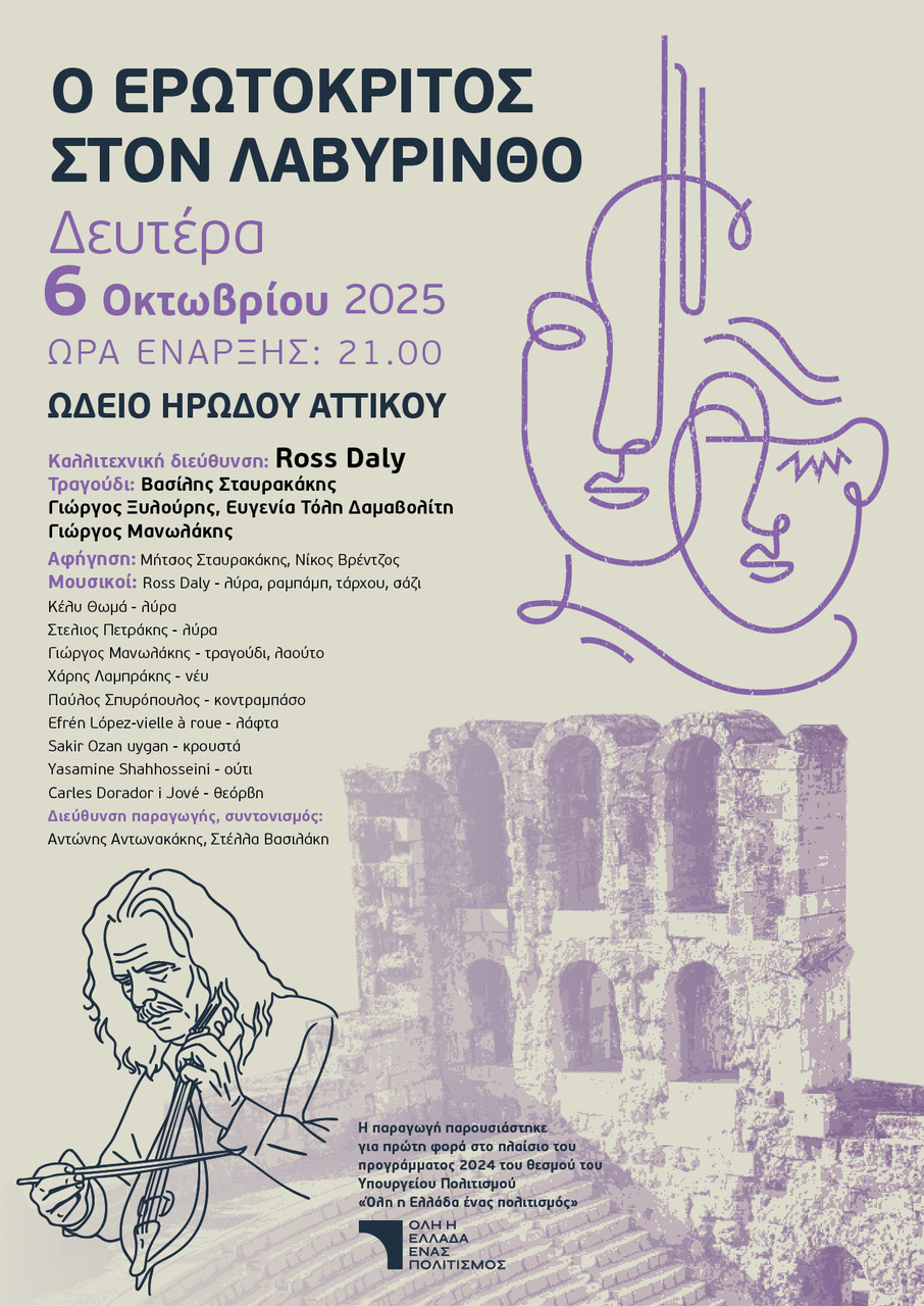 Ωδείο Ηρώδου του Αττικού: "Ο Ερωτόκριτος στον Λαβύρινθο" - Δευτέρα 6/10