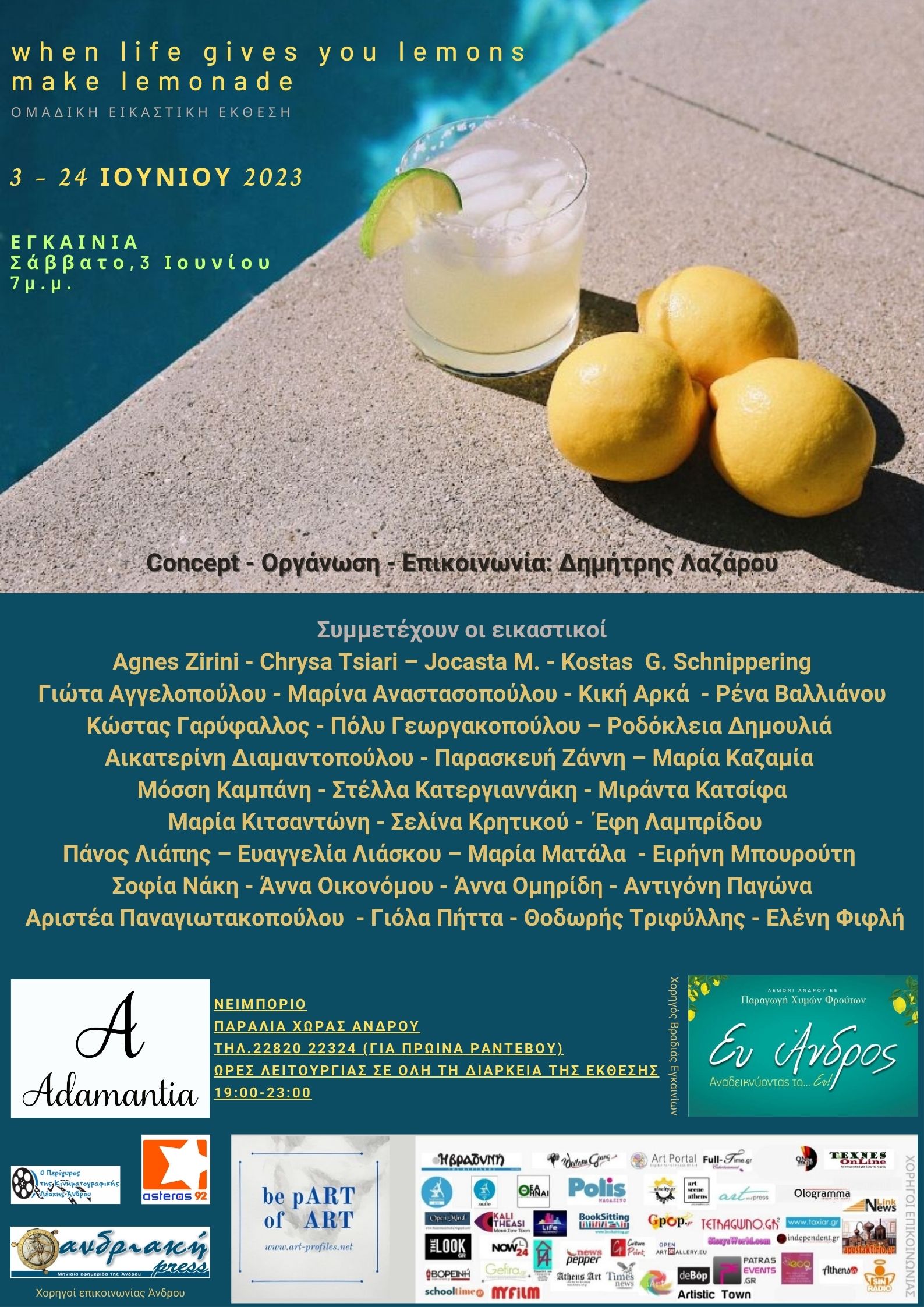 Στο χώρο Τέχνης Αδαμαντία στο Νειμποριό της Άνδρου παρουσιάζεται η ομαδική εικαστική έκθεση When life gives you LEMONS, make LEMONADE
