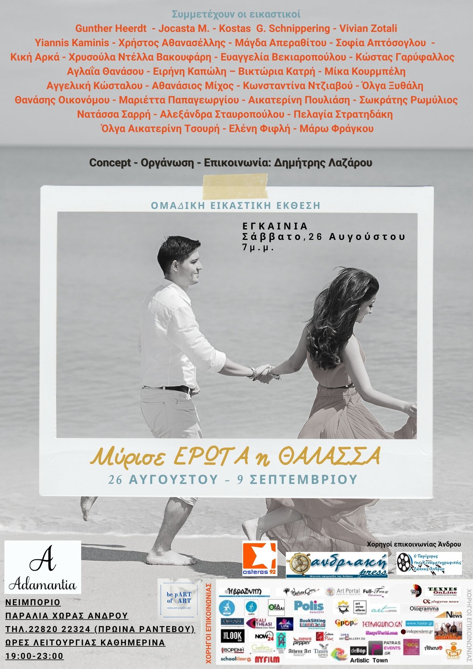 «Μύρισε ΕΡΩΤΑ η ΘΑΛΑΣΣΑ» - Ομαδική Εικαστική Έκθεση στον χώρο Τέχνης ΑΔΑΜΑΝΤΙΑ στην ΑΝΔΡΟ | 26 Αυγούστου έως 9 Σεπτεμβρίου