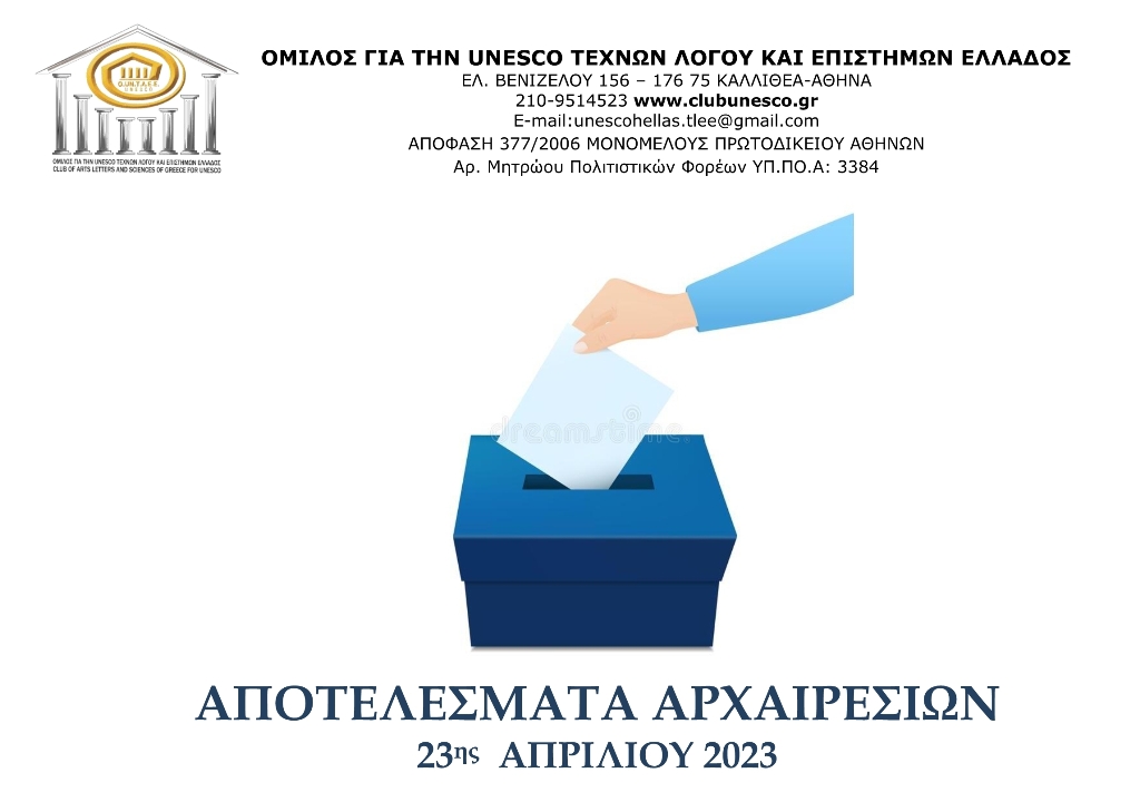ΑΠΟΤΕΛΕΣΜΑΤΑ ΑΡΧΑΙΡΕΣΙΩΝ 23ΗΣ ΑΠΡΙΛΙΟΥ 2023 του ΟΜΙΛΟΥ ΓΙΑ ΤΗΝ UNESCO ΤΕΧΝΩΝ ΛΟΓΟΥ & ΕΠΙΣΤΗΜΩΝ ΕΛΛΑΔΟΣ