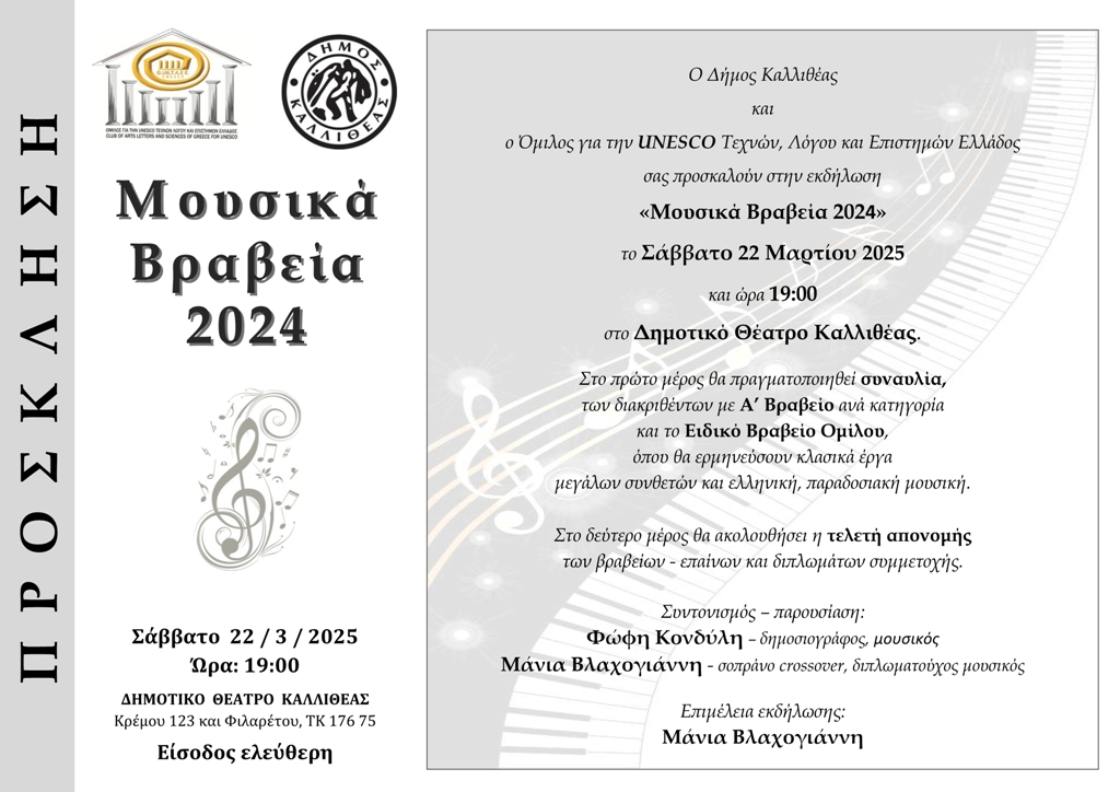 «Μουσικά Βραβεία 2022» 7ου Πανελλήνιου Διαγωνισμού Μουσικής Διοργάνωσης Ομίλου για την UNESCO Τεχνών, Λόγου & Επιστημών Ελλάδος