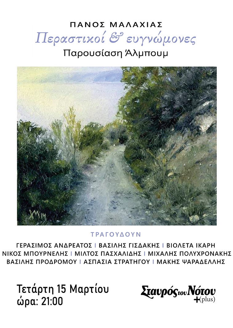 ΠΑΡΟΥΣΙΑΣΗ ΑΛΜΠΟΥΜ: Πάνος Μαλαχιάς "Περαστικοί & ευγνώμονες". Τετάρτη 15 Μαρτίου, Σταυρός του Νότου plus