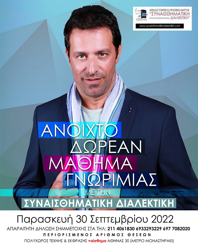 ΔΩΡΕΑΝ ΜΑΘΗΜΑ ΓΝΩΡΙΜΙΑΣ ΜΕ ΤΗΝ «ΣΥΝΑΙΣΘΗΜΑΤΙΚΗ ΔΙΑΛΕΚΤΙΚΗ»