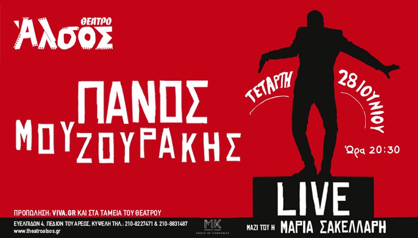 Ο Πάνος Μουζουράκης την Τετάρτη 28 Ιουνίου στο θέατρο Άλσος με ένα ανατρεπτικό live