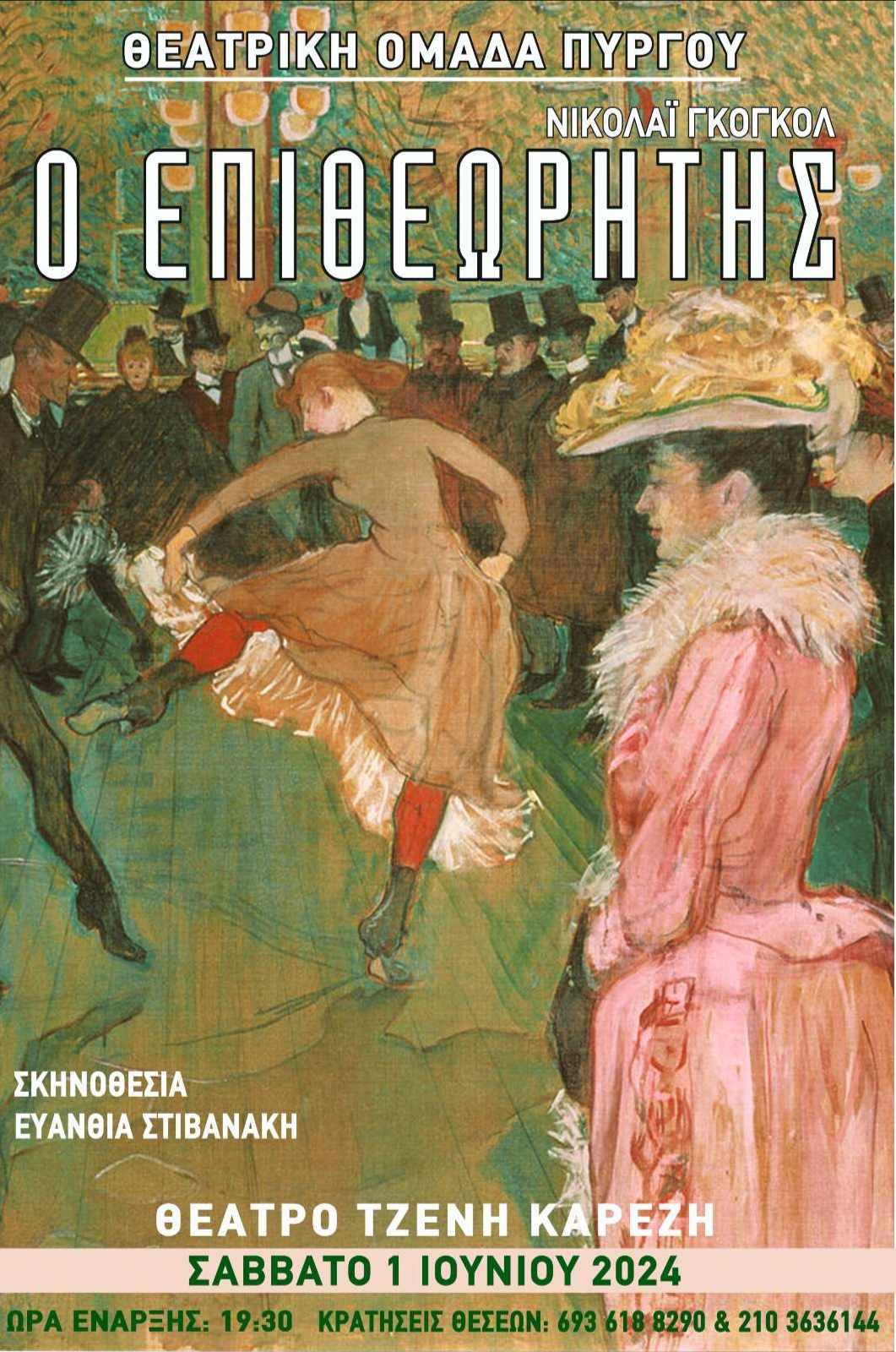 «Ο Επιθεωρητής» του Νικολάι Γκόγκολ, στην Αθήνα την 1η Ιουνίου, από την Θεατρική Ομάδα Πύργου