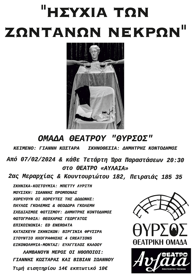 «ΗΣΥΧΙΑ ΤΩΝ ΖΩΝΤΑΝΩΝ ΝΕΚΡΩΝ» από την ομάδα θεάτρου «ΘΥΡΣΟΣ»