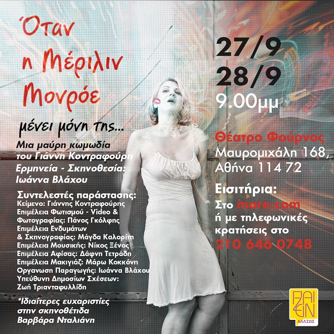 «Όταν η Μέριλιν Μονρόε Μένει μόνη της» του Γιάννη Κοντραφούρη, στο Θέατρο Φούρνος