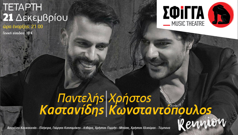 O Παντελής Καστανίδης και ο Χρήστος Κωνσταντόπουλος στη μουσική σκηνή Σφίγγα - Τετάρτη 21 Δεκεμβρίου «Reunion!»