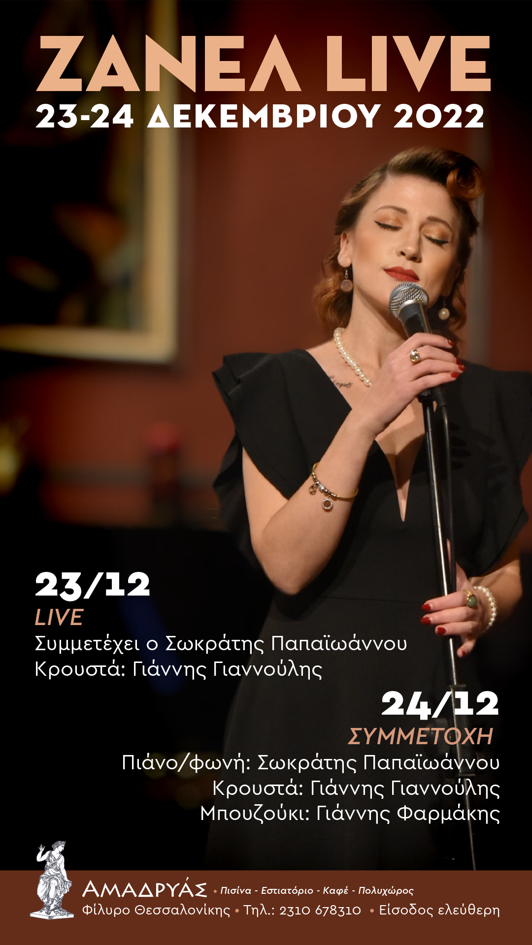 Η Ζανέλ στον πολυχώρο «Αμαδρυάς» στην Θεσσαλονίκη - Παρασκευή 23 και Σάββατο 24 Δεκεμβρίου