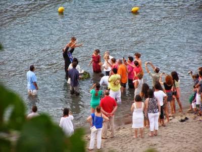 Με κολυμπήθρα το ακρωτήριο Ταίναρο, ο παπα-Γιώργος, ιερέας της περιοχής έχει κάνει περισσότερες από 100 βαφτίσεις στη θάλασσα τα τελευταία 20 χρόνια.