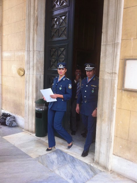 Μία πανέμορφη κοκκινομάλλα αστυνομικός της Βουλής, μαζί με έναν συνάδελφό της, θυροκόλλησε σήμερα την απόφαση για το κλείσιμο της Ολομέλειας και για πρώτη φορά την απαθανάτισε...