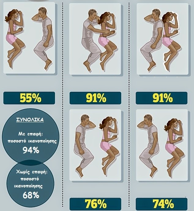 Τα ζευγάρια που κοιμούνται και διατηρούν σωματική επαφή φαίνεται πως είναι και πιο ευτυχισμένα όταν ταυτόχρονα οι δύο σύντροφοι κοιτάζουν ο ένας τον άλλο.