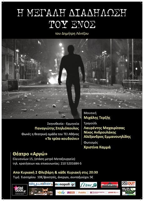 «Ένας άνθρωπος, ένας αγώνας, ένα όνειρο…» πάνω στη σκηνή να προσπαθεί να πείσει το θεατή για τα πιστεύω του & τα ιδανικά του! Ο θεατής μπορεί να ταυτιστεί με το πάθος σας και να αγκαλιάσει έστω για λίγα λεπτά τον «επαναστάτη» ερμηνευτή… δίχως «κομματικές» ενοχές;