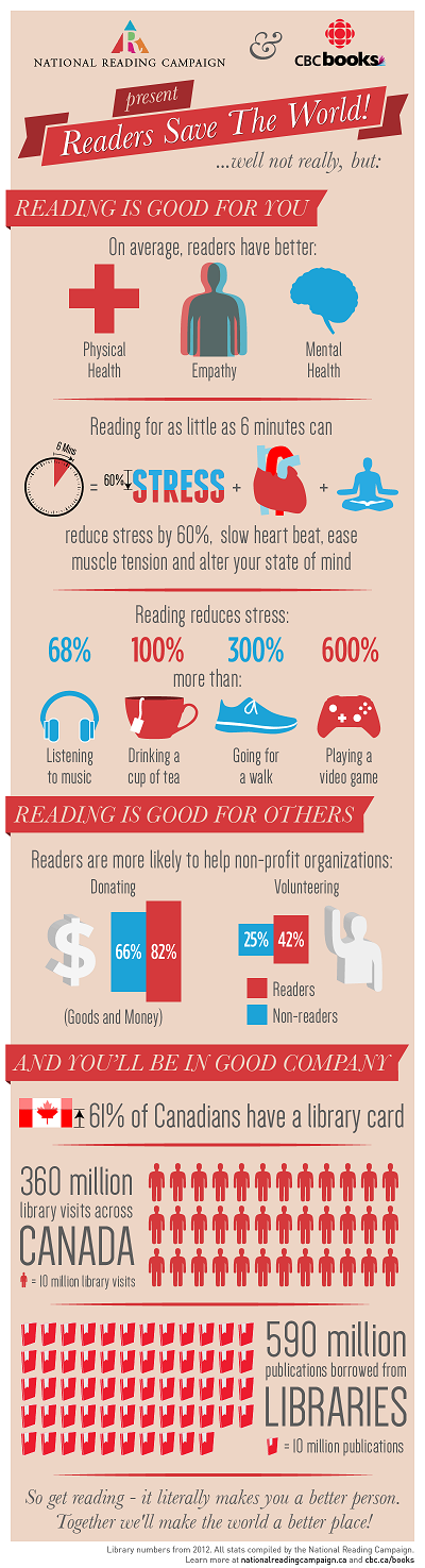 Και αν νομίζετε ότι πηγαίνοντας μια βόλτα ή παίζοντας βιντεοπαιχνίδια θα απαλαγείτε ευκολότερα από το στρες, το σχεδιάγραμμα φαίνεται να σας διαψεύδει, αφού τονίζει ότι η ανάγνωση ενός βιβλίου είναι 300% και 600% πιο αποτελεσματική από ότι το περπάτημα ή τα βιντεοπαιχνίδια, αντίστοιχα...