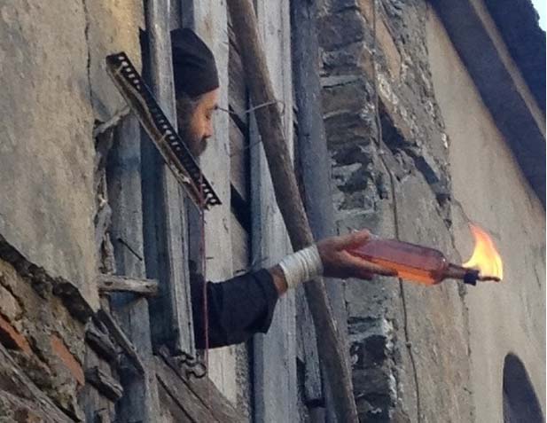 Οι Καρυές του Αγίου Όρους σήμερα, 29.7.13, έζησαν επίθεση με εκρηκτικά και μολότοφ.