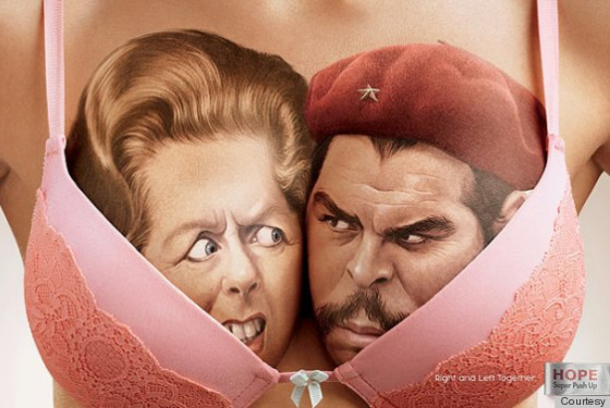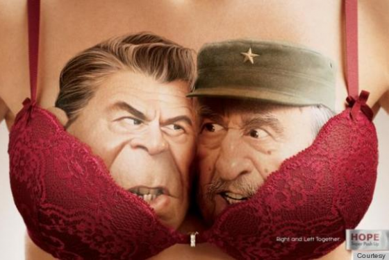Στις φωτογραφίες των στηθόδεσμων της εταιρίας, υπάρχουν σκίτσα ηγετών στα στήθη των μοντέλων. Από τον George Bush και Fidel Castro, μέχρι τον Che Guevara και τον Huge Chavez.