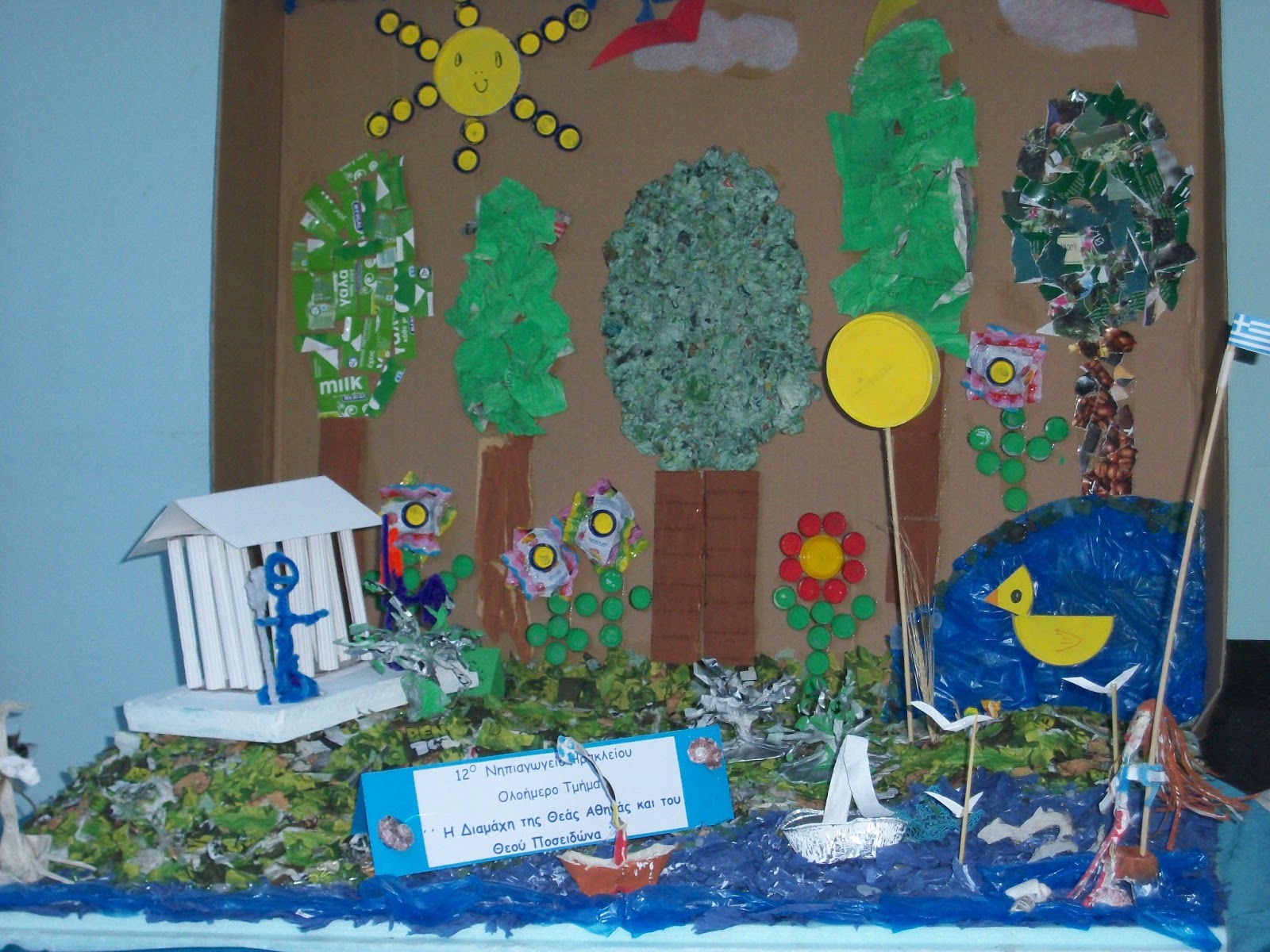«Σκέφτομαι, τρώω, εξοικονομώ… και ως παιδί, δημιουργώ» είπαν, αναγκάζοντας όσους πέρασαν από την πλατεία και θαύμασαν τα έργα τους, να συλλογιστούν έστω για λίγο, ότι πρέπει να ελαττώσουν τις σπατάλες τους, να συνειδητοποιήσουν ότι είναι καταναλωτές της κοινωνίας και όχι δολοφόνοι της, να συλλέγουν και όχι να πετάνε, αν πραγματικά θέλουν έναν κόσμο και έναν πλανήτη νοικοκυρεμένο…