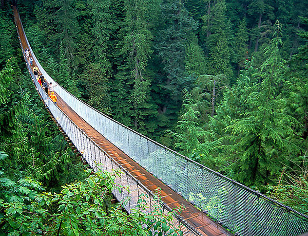 Η γέφυρα Capilano βρίσκεται στο βόρειο Βανκούβερ του Καναδά, συγκεντρώνοντας πάνω από 800.000 «τολμηρούς» επισκέπτες κάθε χρόνο. Και πώς αλλιώς, άλλωστε, αφού κρέμεται κυριολεκτικά στο κενό, σε ύψος 70 μέτρα από το έδαφος, συνδέοντας τις δύο άκρες ενός απότομου φαραγγιού...