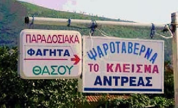 Οι πιο αστείες επιγραφές ... Ελληνικής καταγωγής (φωτό) Aylogyros News Η παλιά μας αυλή 17 Νοεμβρίου 2012 Bλέποντάς τες δεν μπορείς να σταματήσεις να κλαίς από τα γέλια... αφού εμείς είμαστε οι δημιουργοί του γέλιου και του δράματος μαζί!!! (blog)Paulitos Προηγούμενο Επόμενο