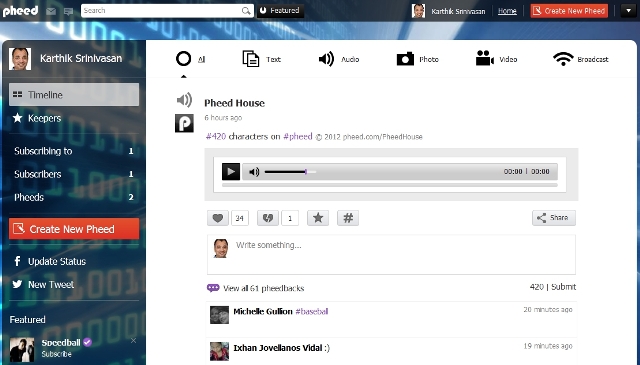 Το Pheed ξεκίνησε τη λειτουργία του τον Αύγουστο του 2012 στην Καλιφόρνια και δίνει στα μέλη του τη δυνατότητα να μοιράζονται με τους υπόλοιπους χρήστες κείμενο, φωτογραφίες και βίντεο.