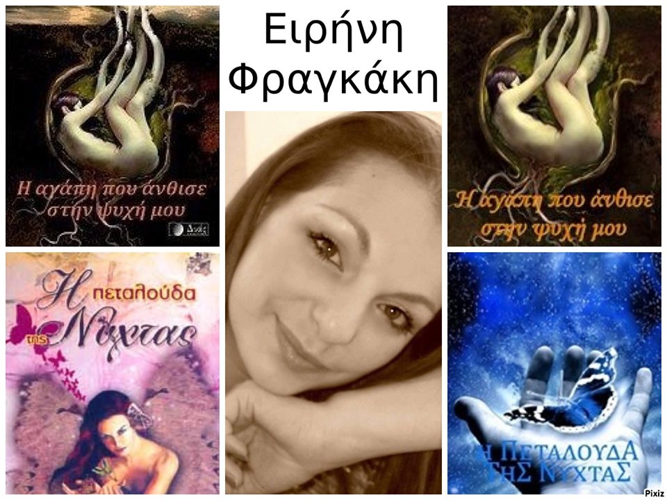 Η Ειρήνη Φραγκάκη, γεννήθηκε στην Σητεία της Κρήτης. Τα τελευταία χρόνια, ζει στην Αθήνα μαζί με τον σύζυγό της και τα 5 παιδιά της.