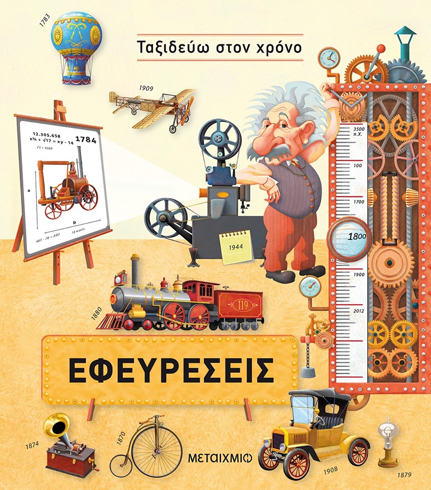 Ελάτε να ταξιδέψουμε στον χρόνο και να εξερευνήσουμε τον κόσμο των επιστημονικών και τεχνολογικών εφευρέσεων. Παρακαλώ καθίστε και δέστε τη ζώνη σας! Η χρονομηχανή θα πηδήξει αιώνες και χιλιετίες και θα μας μεταφέρει στη στιγμή που δημιουργήθηκαν οι σπουδαιότερες εφευρέσεις. Θα καλύψουμε τα πάντα – από την εφεύρεση του ποδηλάτου και του τροχού κεραμικής ως το πρώτο αυτοκίνητο και το πρώτο αεροπλάνο, με ενδιάμεσες στάσεις στην εφεύρεση της τυπογραφίας, των γυαλιών και του τηλεφώνου.
